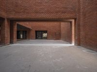 a large brick building that has a few windows and windows on it's front