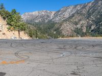 This stunning stock photo showcases a clear blue sky and a breathtaking mountain landscape. The image captures the beauty of an open space surrounded by majestic mountains. The day is sunny, highlighting the vibrant colors of nature. The ground consists of dirt and gravel, providing a rugged surface for outdoor enthusiasts to explore. This picturesque scene is perfect for projects related to travel, nature, and adventure.
