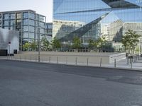 This image captures the essence of city life in Berlin, Germany. The modern architecture of the building with curved glass windows stands out against the clear sky. The empty street reflects the calmness of the day in the bustling metropolitan area. The partially constructed building showcases the ongoing urban development and the city's commitment to innovative urban design. The glass wall of the building adds a touch of elegance to the facade. This photo represents the modern and dynamic atmosphere of Berlin, a city that blends history with contemporary urban living.