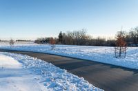 This is an image of an elevated road in Toronto, Canada. The asphalt road stretches across the landscape, surrounded by the beauty of nature in autumn. The clear sky above highlights the high elevation of the road. The winter season is reflected in the snow-covered ground. This photo captures a typical day in Toronto, where the elevated road provides a unique perspective of the city's landscape.