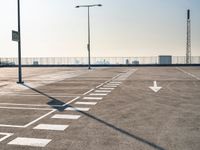 An empty parking lot in Holland, Netherlands, with modern architecture and clear skies. The black-and-white urban design contrasts with the grey concrete streets. The open space is perfect for gatherings and events.