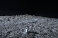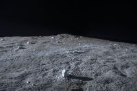 This image captures the breathtaking view of the lunar landscape from the moon's surface. An astronaut stands on the rugged surface, gazing back towards the Earth in awe. The clear sky above contrasts with the dark expanse of the universe beyond. The moon's surface is characterized by open spaces of gravel and sand, as well as dirt tracks left behind by previous moon missions. This photo beautifully captures the serenity and beauty of the moon, showcasing the vastness of space and the wonders of nature.