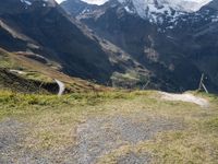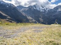 This breathtaking photo captures the beauty of Austrian landscape. With a clear sky overhead, the open space is filled with lush green grass, dirt and gravel surfaces, and majestic mountains in the distance. It is a perfect day to immerse yourself in the wonders of nature in Austria, a country renowned for its stunning scenery in Europe.