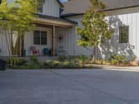 This image features a residential property in a suburban neighborhood. The house has a garage in the front, and on one side of the driveway, there are plants and trees growing. The clear sky above contrasts with the concrete surfaces of the road and the building. This photo captures a typical day in a suburban area, showcasing the blend of nature and architecture. The vegetation adds a touch of greenery to the scene, creating a peaceful and inviting atmosphere.