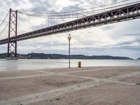 This is an image of a coastal scene in Lisbon, Portugal. The clear sky and calm ocean create a serene atmosphere. The photo captures a bridge and an underpass that lead to an open space with a pier. The water resources in this area are visually striking, with the lake and coastline adding to the picturesque scenery. The street lights and pavers on the road surface contribute to the overall aesthetic. This photo represents a typical day in Lisbon, showcasing the beautiful water features and the unique blend of architecture and natural surroundings.