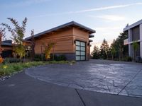 A cloudy day in a residential neighborhood. The road surfaces are lined with asphalt, and trees and vegetation adorn the land lots. Buildings and houses complete the charming scenery.