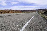 This captivating image showcases the breathtaking landscape of Canyonlands in Utah, USA. The photo features a long winding road cutting through the red rock desert, with contrasting green vegetation and grass along the edges. The road surface, made of asphalt, stands out against the stunning natural beauty of the canyon. In the distance, the majestic mountains and blue sky create a picturesque horizon. This photo captures the essence of a sunny day in the desert, highlighting the unique blend of nature and man-made infrastructure in Canyonlands, Utah.