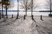 This image captures the architectural beauty of a small coastal town in Ontario, Canada. The open space near the shore offers a stunning view of the lake and horizon. The road surface and cobblestone pier provide a charming touch to the overall landscape. The clear day is accentuated by fluffy clouds and contrails left behind by passing planes. The recreational area along the river offers a serene environment for locals and tourists alike. With a jetty and landing surface nearby, this picturesque harbor is a popular spot for nature enthusiasts and photographers. Toronto's stunning landscape in winter is showcased in this photo.