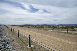 Coastal Beach with Fenced Sand Area on a Cloudy Day