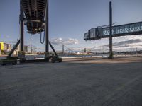 two large cranes are near a freeway in an industrial area that is being built for a transportation
