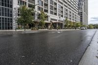 A modern high-rise building in a coastal city. The wet asphalt road reflects the low light of the day. This residential area is the perfect blend of urban living and coastal charm.
