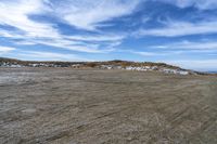 A gloomy day in Italy with a grey sky. The landscape features a coastal plain with mountains in the background. The grass and trees create a gloomy atmosphere. A gravel road runs through the open space.