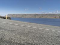 A picturesque coastal road in Iceland, winding through rugged highlands and offering stunning views of the ocean. The clear sky adds to the beauty of the landscape, with mountains in the distance.
