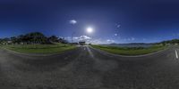A coastal road winds through a picturesque landscape, with mountains in the background and a tranquil body of water in the foreground. Suburban homes and lush vegetation dot the road, creating a serene and idyllic scene.