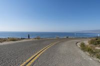 A coastal road in Lompoc, California, winding along the shore and offering stunning views of the ocean. The clear sky and natural landscape enhance the beauty of this scenic drive.