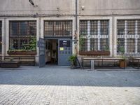 This is an image of a typical street in Berlin, Germany. The cityscape showcases the unique architecture and cobblestone roads that are characteristic of the European city. The buildings in the neighborhood feature a mix of residential and commercial spaces, creating a vibrant and lively urban atmosphere. The facade of one of the buildings displays windows and doors, while the courtyard is adorned with vegetation. The image captures the essence of city life in Berlin, with cafes and shops lining the streets. This photo showcases the urban design and art district of Deutschland.