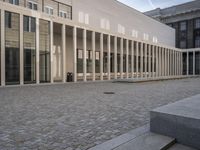 The James Simon Gallery, a modern architectural marvel in Berlin, Germany. The sandstone facade blends in with the classic architecture of the city. The cobblestone courtyard is a popular tourist attraction for those seeking a taste of city life in Europe.
