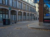 Cobblestone road in Atlanta, Georgia, lined with classic architecture storefronts. Urban design blends with autumn colors, capturing city life in the USA. A perfect day for shopping in the vibrant urban landscape.