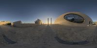 A sunny day in Lisbon, Portugal, with modern architecture and cobblestone streets creating a unique urban design. The fisheye photo captures the vibrant atmosphere and the clear blue sky. A perfect break of day in Europe.