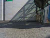 Modern architecture in Berlin with glass walls creating hard shadows. The urban design blends with the city's open spaces. Explore the European city life surrounded by cobblestone streets and pavers.