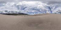 large sand dune with a beautiful sky in the background and clouds in the foreground