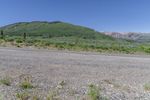 Elevated view of a straight road in Crested Butte, Colorado, surrounded by evergreen forests and mountain landscapes. Empty and peaceful, the road leads to the horizon, capturing the natural beauty of the area.