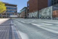 A sunny day in downtown Denver, Colorado. Modern architecture and high-rise buildings dominate the city skyline. Brick walls and paved roads connect the bustling business district, offering a variety of restaurants, cafes, and open spaces to explore.