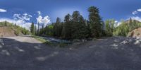 a scenic road is captured with an amazing sky view through the fisheye lens pan