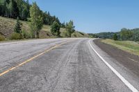 This is an image of a scenic road in Antonito, Colorado, USA. The asphalt road cuts through a lush landscape filled with green trees and hills. The road stretches straight ahead before curving gracefully in the distance. The clear sky overhead adds to the natural beauty of the surroundings. This photo captures the serene and picturesque nature of Antonito, a perfect destination for those seeking a peaceful retreat amidst the beauty of Colorado. Join us on a journey down this road and immerse yourself in the stunning landscapes of Antonito, Colorado.