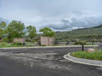 A scenic road in Colorado, surrounded by majestic mountains and a tranquil lake. The clear blue sky reflects on the asphalt, creating a picturesque landscape. This RV-friendly campground offers stunning views and ample parking.