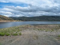 An open space in Colorado, with a breathtaking landscape of mountains and a tranquil lake. The clear sky and sandy beach add to the beauty of this natural wonder. A perfect day for outdoor activities in the USA.