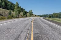 A scenic road in Antonito, Colorado, surrounded by lush green forests and rolling hills. The straight and curved asphalt road leads to a picturesque landscape with clear skies. Explore the beauty of nature in Antonito and Chama.