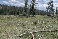 This is an image of a rugged dirt road in Colorado, USA. The landscape features open spaces and forests with grass and vegetation. The sky is covered with clouds, adding to the natural environment. The road leads towards the wilderness, with lodgepole pines and shortleaf black spruces lining the way. This photo captures the beauty of nature and the recreational opportunities it offers, including off-road tracks and gravel fields. The location is near Antonito, Chama, and La Manga Pass in Colorado.