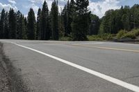 A scenic view of the asphalt road cutting through the picturesque landscape of Colorado. Lined with majestic trees, the road meanders through the forest and leads to the mountain pass. Clouds hover overhead, adding to the natural beauty.