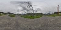 multiple circles of photos showing power lines and high voltage lines in the middle of nowhere