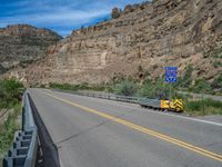 A landscape view of a road in Colorado, lined with an Armco barrier. The asphalt road stretches into the distance, under a clear sky. The natural surroundings add to the beauty of the USA landscape.