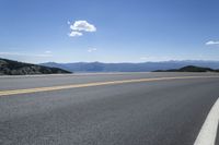 This photo captures a stunning landscape in Crested Butte, Colorado, USA. The image shows an empty asphalt road, lined with yellow stripes, snaking through the mountains. The clear blue skies provide a beautiful backdrop to the highland scenery. This scene represents the natural beauty of the area and the serenity of a day in the mountains. The road surface and tar slope make for a smooth and inviting thoroughfare. This photo is a perfect representation of the beautiful nature found in Colorado.