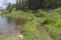 A scenic landscape in Colorado, USA. The open space is surrounded by majestic mountains and features a pristine lake. Lush green grass and tall trees create a natural environment perfect for recreational activities. Explore the beauty of Clinton Reservoir and its surroundings.
