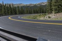 A scenic road in Colorado surrounded by lush forests and towering mountains. Clear skies highlight the natural beauty. Armco barriers provide safety along the road. Experience the breathtaking landscape of Crested Butte and Cottonwood Pass.