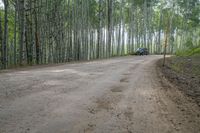 This image captures a truck traveling down a dirt road surrounded by trees in the Crested Butte area of Colorado, USA. The landscape showcases the alpine forest with its vibrant aspen leaves. The road surface consists of dirt and gravel, blending harmoniously with the natural surroundings. In the distance, the majestic mountains add to the picturesque scene. This photo represents a sunny day in the Crested Butte area, where the beauty of nature and the thrill of off-road driving meet.
