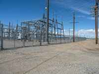 A rural landscape in Colorado, USA. The dirt and gravel roads and surfaces blend seamlessly with the natural surroundings. Clouds dot the sky as a power plant harnesses solar energy in the distance.