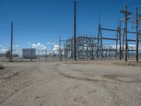 A scenic rural landscape in Colorado, USA. The open space is dotted with dirt and gravel roads, surrounded by nature and clouds. A power plant, powered by solar energy, stands in the distance.