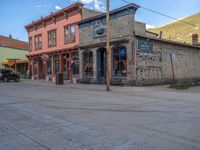 A scenic road in the charming village of Silverton, Colorado, USA. Cloudy day adds a moody atmosphere, contrasting with the vibrant storefronts and shops lining the asphalt road.