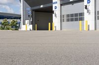 A modern architecture building in Toronto, Ontario surrounded by a parking lot. The concrete facade and low-rise structure give it an industrial feel. Clear skies highlight the urban landscape.