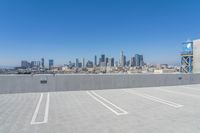 Overlooking the city of Los Angeles, California, from the top of a skyscraper. The concrete parking deck provides open space and a clear view of the city's vibrant skyline. A perfect representation of urban design in a metropolitan area.