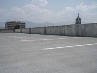 a parking lot and wall are pictured in a photo from the perspective point of view