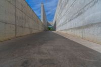 A straight road framed by modern architecture and urban design in the city of Zaragoza, Spain. Concrete walls cast hard shadows, creating an intriguing interplay of light and shadow. The city plaza offers a lively atmosphere with a touch of Europe.