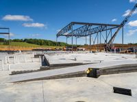 This stock photo shows construction work in progress at the new library building in Tennessee, USA. The photo was taken on July 19, 2012. The image captures an open space with a cloudy sky backdrop. The construction site depicts workers and machinery amidst concrete surfaces. It is a bright day, showcasing the ongoing progress and transformation of the library building.