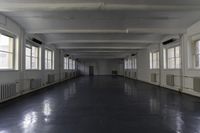 This is an image of a modern architectural building with floor-to-ceiling windows. The glass walls create a seamless connection between the interior and exterior spaces, allowing an abundance of natural light to flood the hall. The combination of wood flooring and composite materials give a warm and contemporary feel to the interior design. The open floor plan and high ceilings enhance the feeling of spaciousness. This photo represents a blend of modern architecture and interior design, showcasing the use of glass, wood, and composite materials.