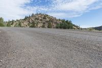 A stunning view of the Crested Butte landscape in Colorado on a beautiful day. The image captures a dirt road winding through a hill, with a prominent rock in the foreground. Lush trees decorate the background, and the low clouds in the grey sky add a touch of drama to the scene. The off-road track is covered with gravel, providing a rough yet adventurous surface. This picture showcases the natural beauty of the mountainous terrain and the serene nature of Crested Butte. Perfect for travel and nature-oriented projects.